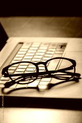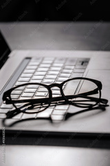 Sleek eyewear placed on a laptop keyboard, highlighting the importance of tech solutions for digital eye care. Perfect for frequent computer users.