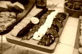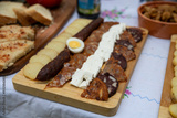 Balkan food bacon, onions, tomatoes, sausages and boiled eggs