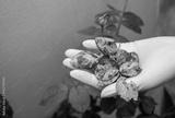 Gardener holding group of disease rose leaves after removing it from plant tree.