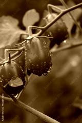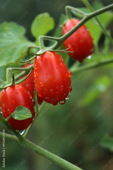 Datterino or Cherry tomatoes with water drops in the vegetable garden on summer
