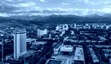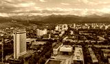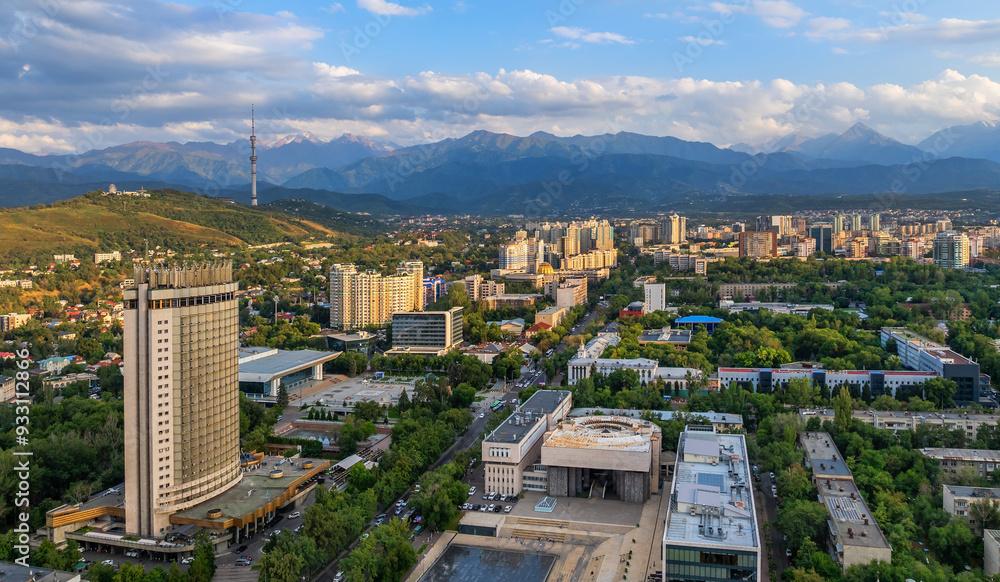View from a quadcopter of the south-eastern part of the Kazakh city of Almaty in the summer afternoon