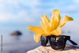 Yellow lily and glasses