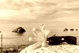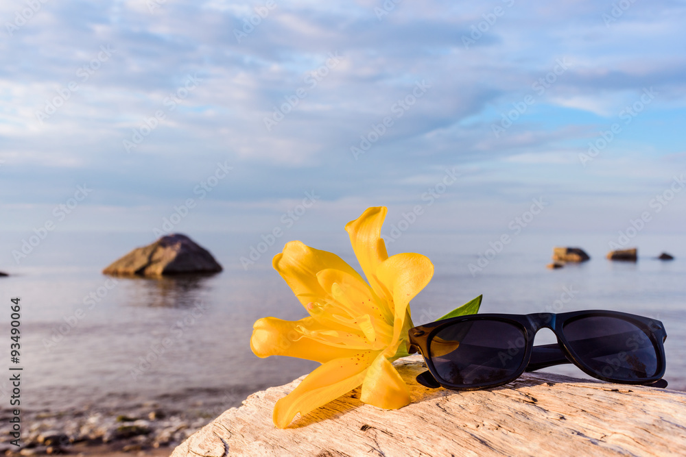 Lily and glasses on coast