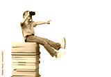 Back to school, cute girl with pile of books, smart child, read, knowledge. PNG file with transparency