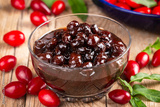 Homemade dogwood cornel jam in glass jar
