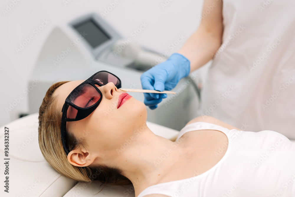 Aesthetician prepares a client’s skin for laser hair removal by applying cooling gel in a modern spa. Highlighting advanced skincare procedures in a professional and serene environment.