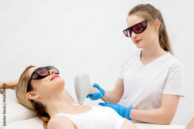 Laser hair removal for underarms in a professional beauty clinic. A skilled technician performs the procedure to ensure smooth and hair-free skin.
