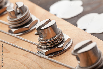bass guitar headstock tuning post macro closeup