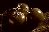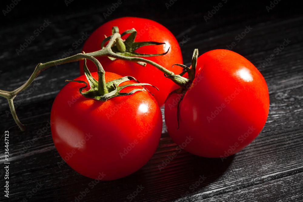 tomato branch on black wood background