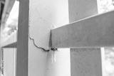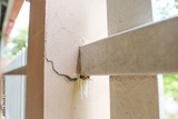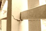 House cement wall is cracked split or old building have stain and broken collapsed.