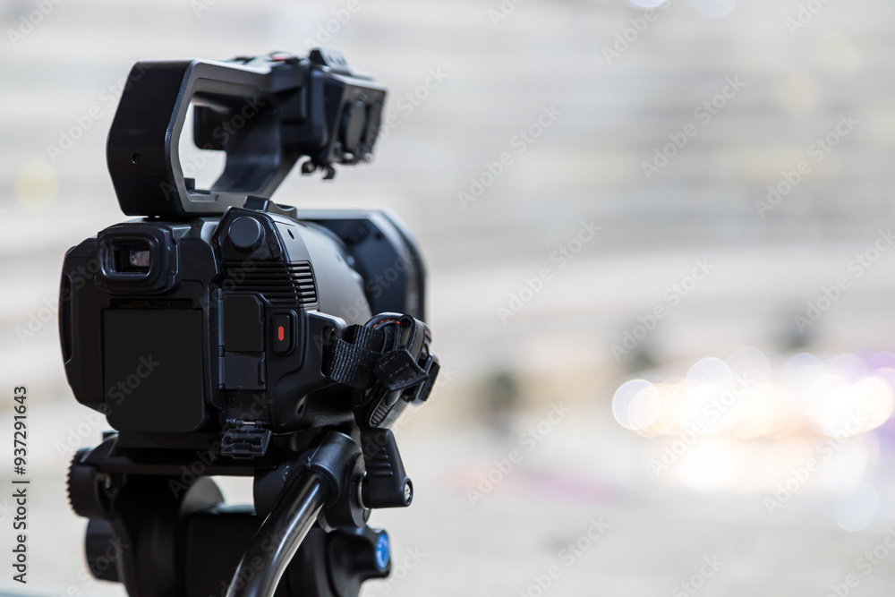 Video camera with blur background for journalist interview broadcasting reporter news or press conference speaker or public speaking or meeting report record and content creator live media concepts.