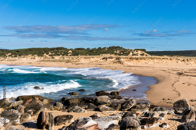 Picturesque secluded Australian ocean beach with rocky shore