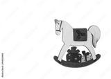 Toy rocking horse Christmas decoration. Vintage style, white bac