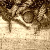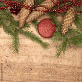 Christmas fir tree on wooden background