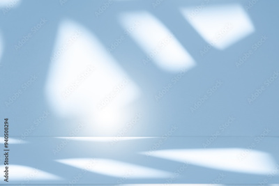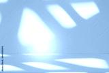 Studio style background wall decoration presentation uses white and blue tones. with shadows cast from a nearby window, concept creating a decorative backdrop.