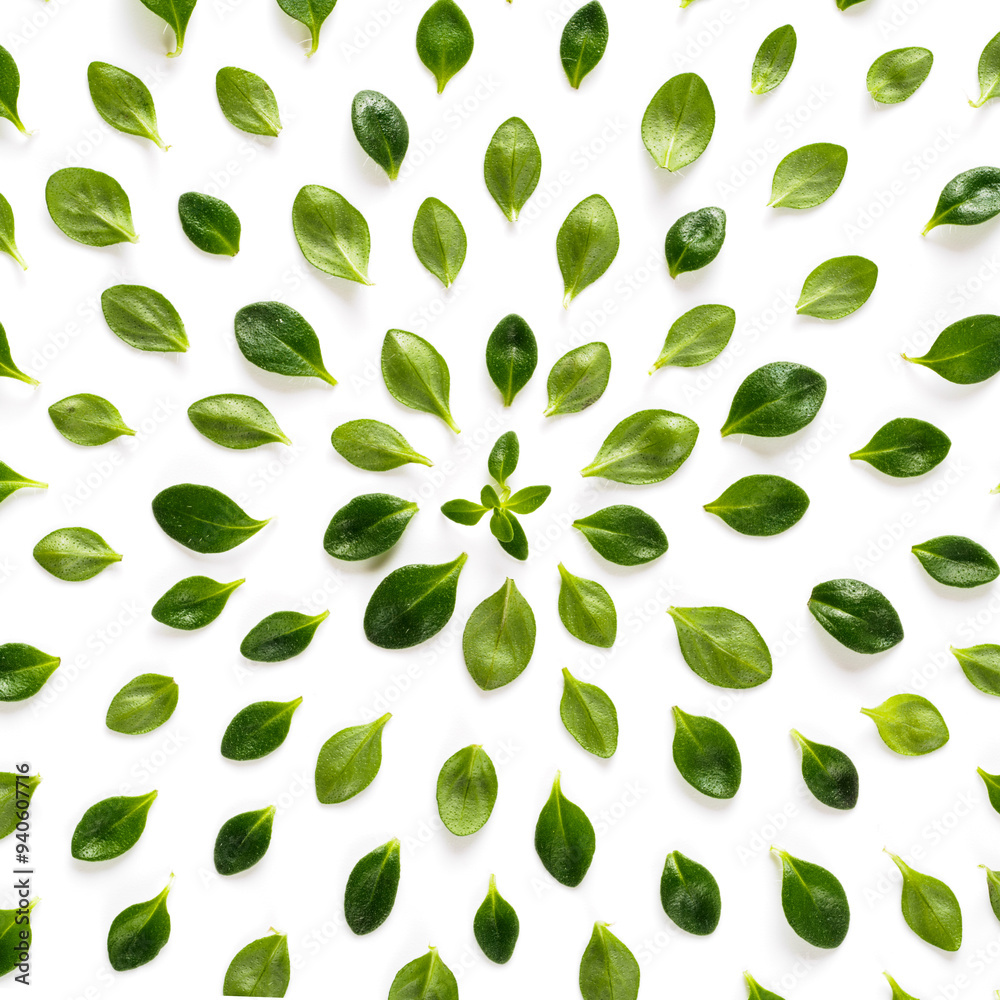 green leaves pattern from fresh thyme leaf. Top view or flat lay. Isolated on white with clipping path. Ssquare