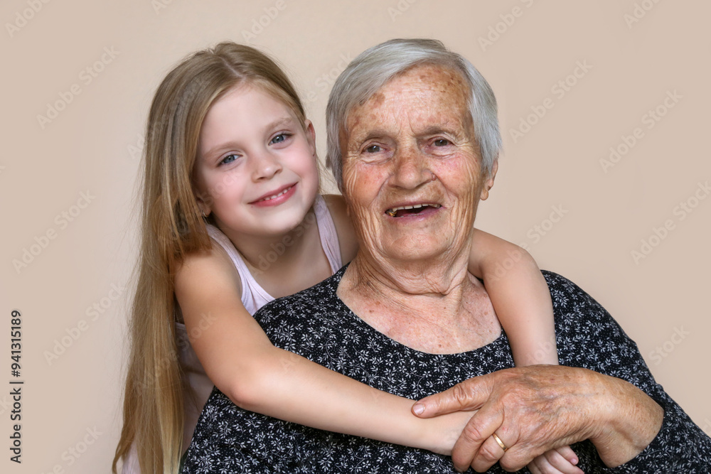 Happy family, child and great grandma hug, relax, smile, love and bond together, happy and content at home showing love and affection