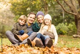 Smiling young family sitting in leaves