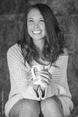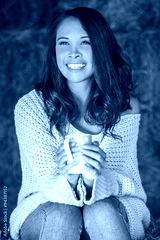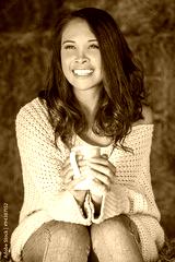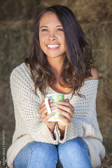 Asian Eurasian Girl Woman on Hay Bale Drinking Coffee Tea