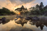 Environment hot spring in sunrise time at Jaeson National Park in Lampang, Thailand