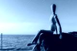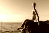 Dummy sitting on the stone