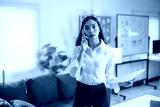 Businesswoman is having a phone call and receiving bad news while reading documents in her office