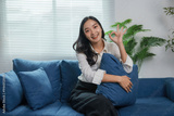 Young businesswoman is showing the ok sign while sitting on a sofa at home, expressing her positivity and success