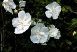 white flowers of hibiscus syriacus bush in park close up