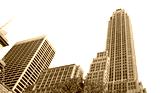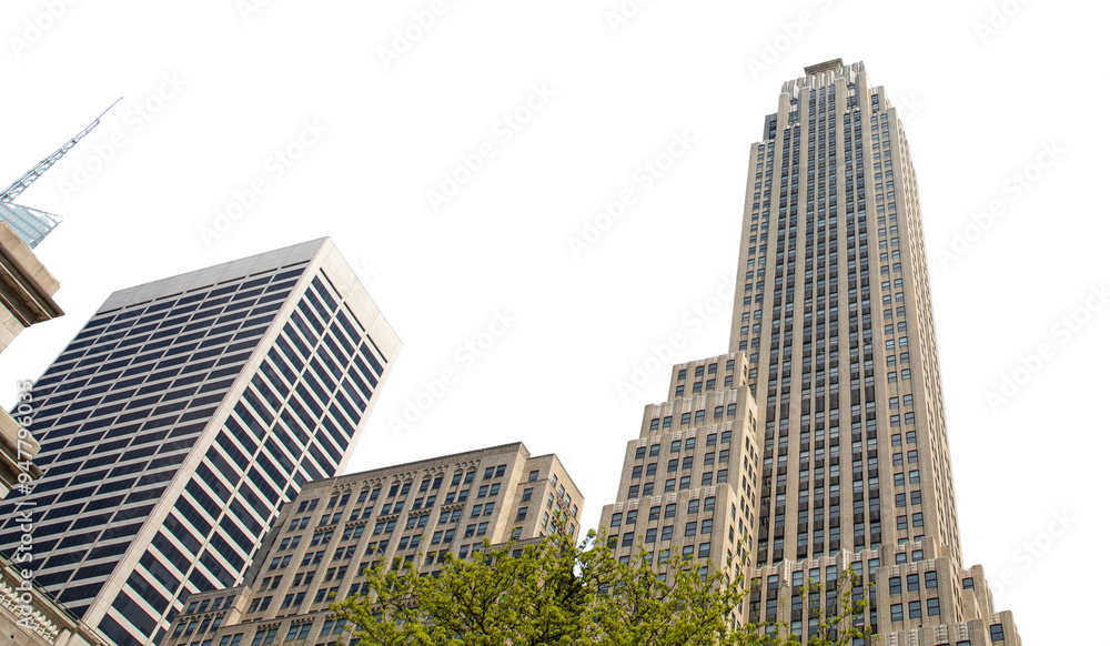 City skyscrapers buildings isolated on white transparent, high angle view, New York United States of America