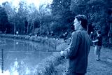 middle-aged man, a European, fishing busy day. fishing on the lake in summer day. portrait of a man.