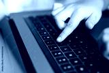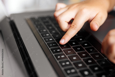 Close-up of children's hands typing on a laptop keyboard. Perfect for educational content, technology use by kids, or highlighting early learning in a digital age.