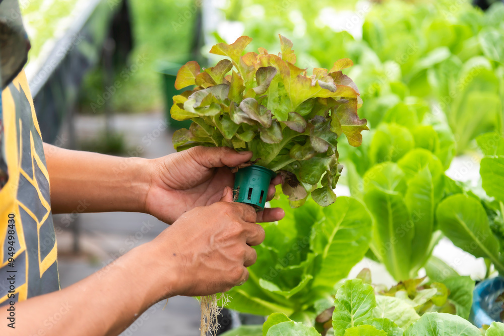 Hydroponic of lettuce farm growing in greenhouse for export to the market. Interior of the farm hydroponics. Vegetables farm in hydroponics.