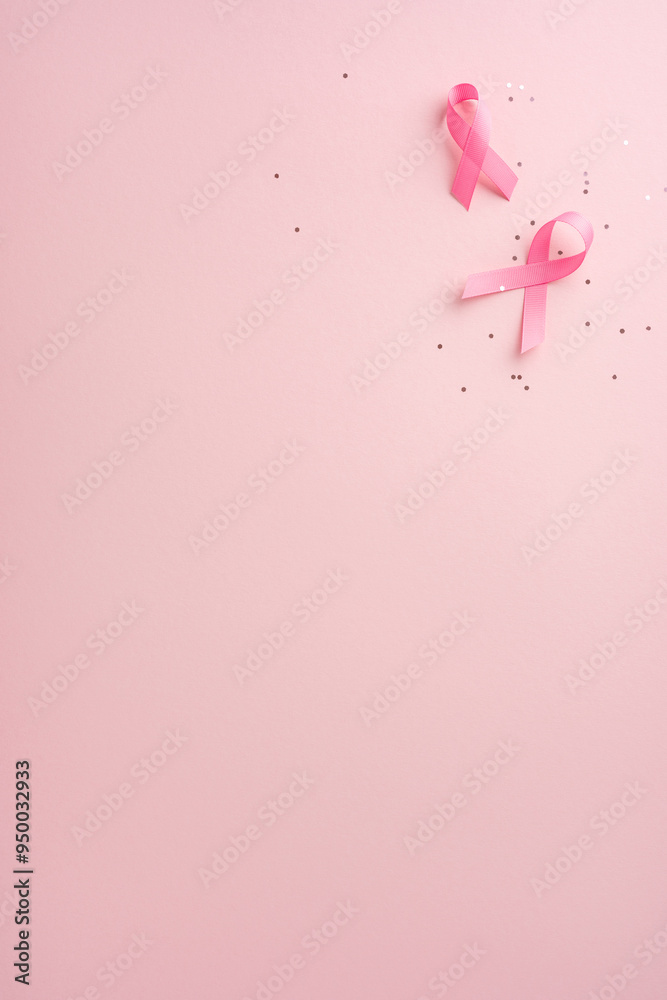 Two pink ribbons on a pastel background representing breast cancer awareness, highlighting support and hope