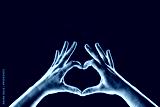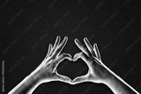 Hands in the Form of Heart Sign in Black and White on Textured Paper Background, Copy Space