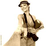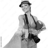 Follow me, happy young beautiful Greek woman holds a mans hand