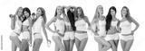 Fitness women. Three young beautiful girlfriends in white sportswear