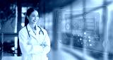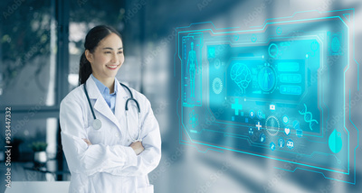 Digital health care innovative virtual science and medicine technology concept, Doctor working with human anatomy virtual interface icons.