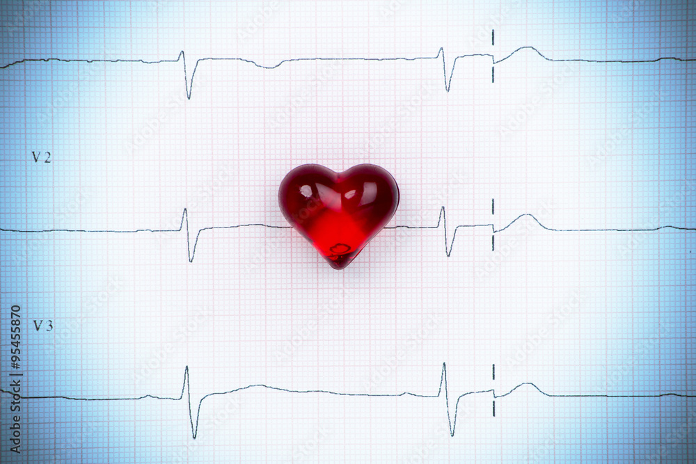 Cardiogram pulse trace and heart concept. Macro, shallow DOF.