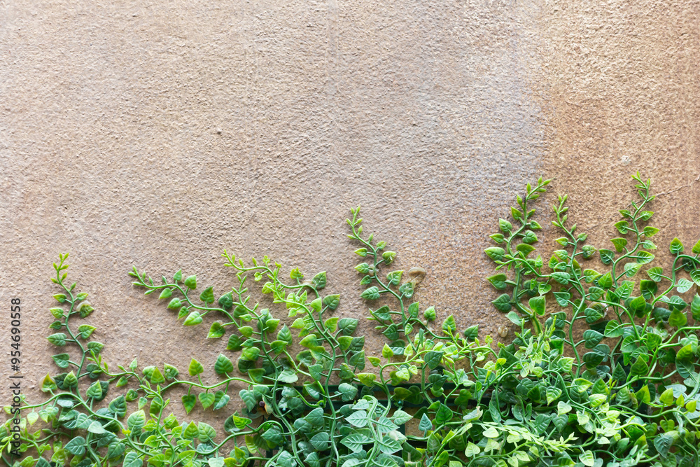 Green leaf Ivy on grunge cement wall with empty space for background.