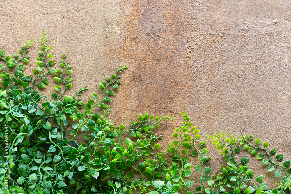 Green leaf Ivy on grunge cement wall with empty space for background.