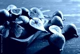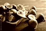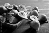 A close-up photo of fresh figs, some whole and some halved, displayed in a wooden bowl