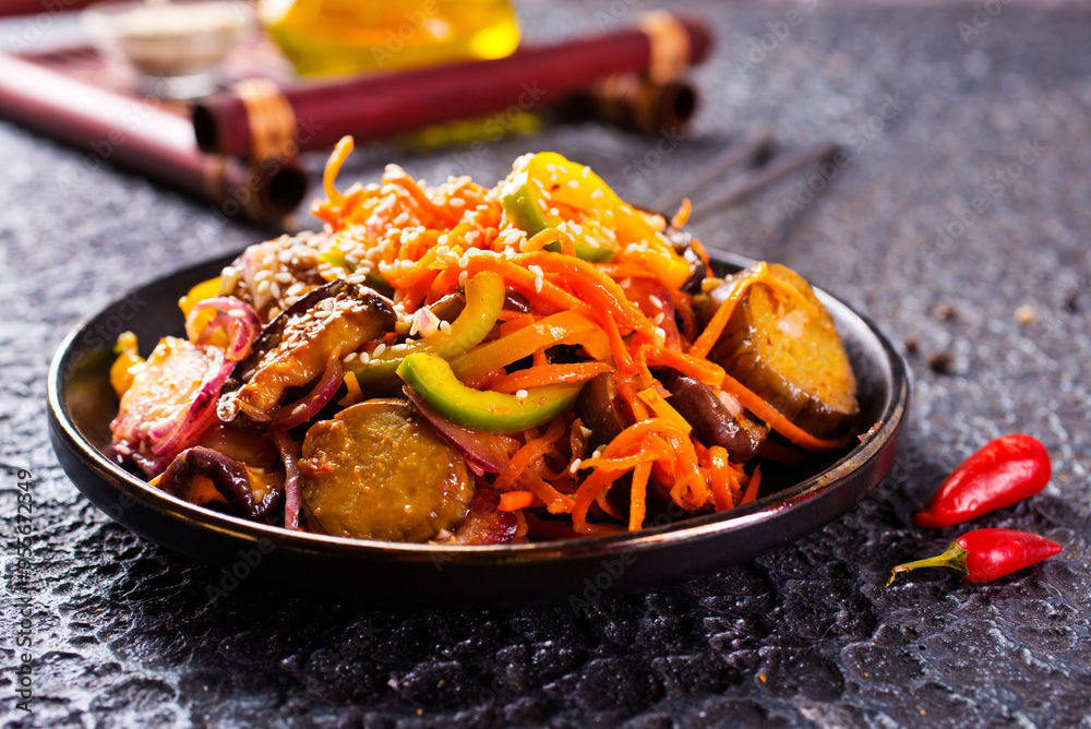 Summer Vegetable spicy stew of zucchini, potatoes, peppers, onions, tomatoes and eggplant