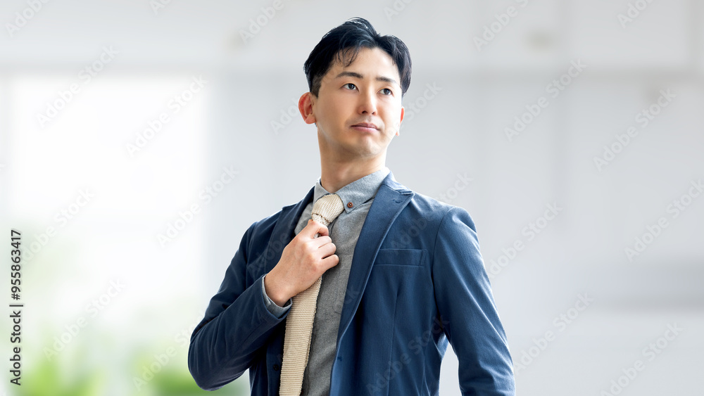 ネクタイを締める男性ビジネスマン