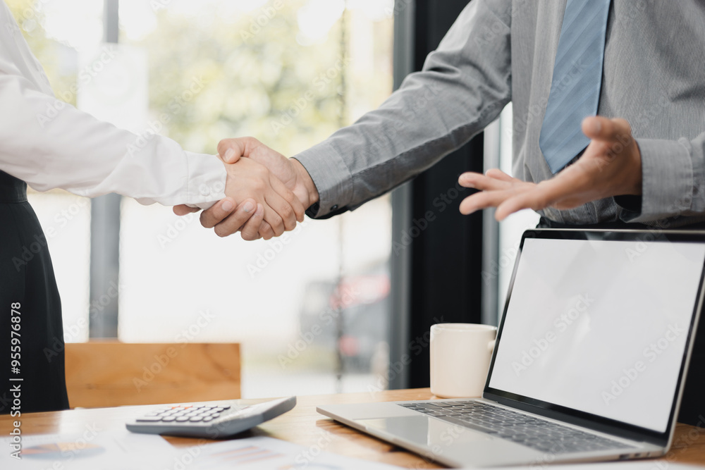 Two Asian business People shaking hands and meeting in office, Business about successful startup projects concept.
