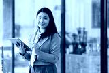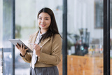Young asian businesswoman using tablet to startup projects and business presentation plan.