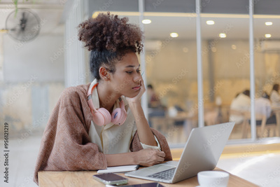 Young African American woman are stressed and tired from work sitting at desk in the office, feeling sick at work, stress from work.