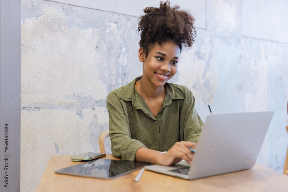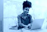 African American woman and working on laptop.