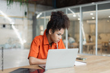 African American businesswoman are stressed and tired from work sitting at desk in the office, feeling sick at work, stress from work.