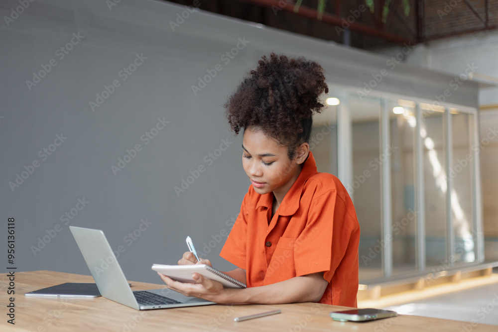 African American businesswoman are stressed and tired from work sitting at desk in the office, feeling sick at work, stress from work.