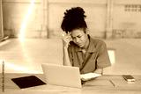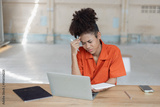 African American businesswoman are stressed and tired from work sitting at desk in the office, feeling sick at work, stress from work.